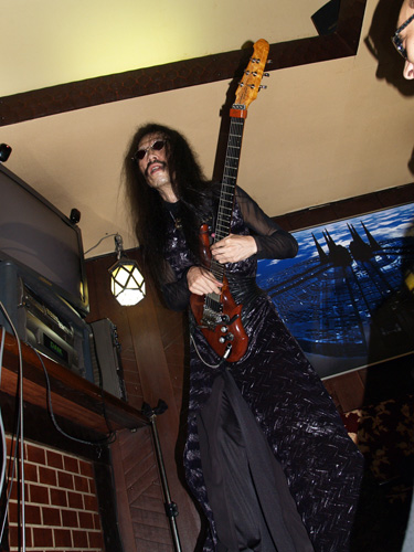 アンプの上にあるお花は、素敵な男性がJINMOにプレゼントしてくれたものです。 開場時から終焉までの間、PBG4でDrawingが映し出されていました。 撮影/HARI |